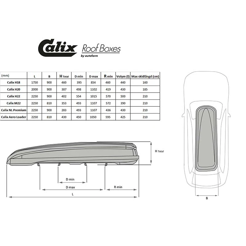 Calix Nordic Loader suksiboksi, kiiltävä valkoinen, 225x90x28cm, 430 litraa. Erityisen matala suksiboksi – Korkeus vain 28cm.