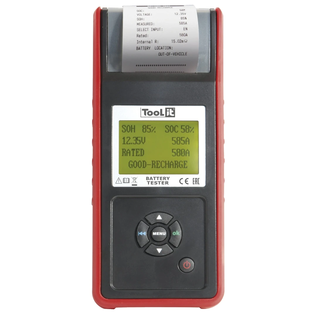 Akkutesterissä on sisäänrakennettu tulostin, joka mahdollistaa testitulosten tulostamisen, joten voit helposti seurata ja tallentaa akkujen kuntoa. Kaapelin pituus on 120 cm, mikä takaa joustavan käytön eri tilanteissa. PBT 600 toimii 9 V paristolla, ja se toimitetaan kätevän säilytyspussin kanssa, joka helpottaa sen kuljettamista ja säilytystä.