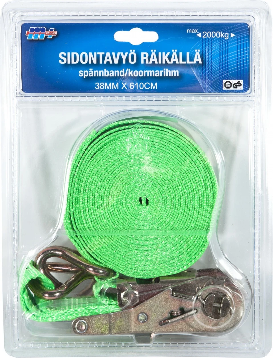 Kuorman sitomiseen ja kiinnittämiseen. Kaksiosainen räikkä ja kaksoiskoukku. Erittäin hyvä kesto uv-valoa (päivänvalo) sekä ruostumista vastaan.