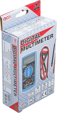 3,5″-digitaalinen LCD-näyttö. Alhaisen pariston ilmaisin. Ylikuormitussuoja. Manuaalinen alueen valinta. Turvapistorasiat ja -pistokkeet. 9V paristo (sisältyy).